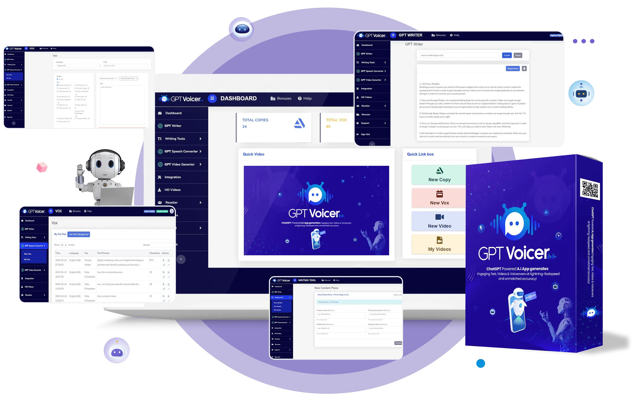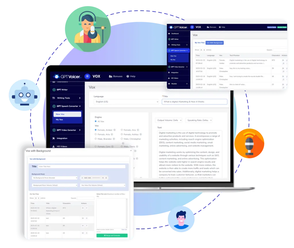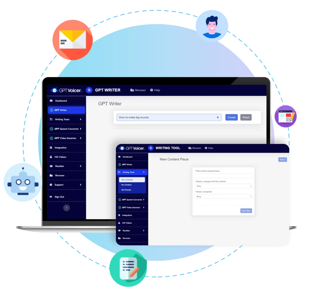 GPTVoicer = gPT writing tools + GPT Voice Converter + Konten marketing Siap Pakai di hot niche bisnis